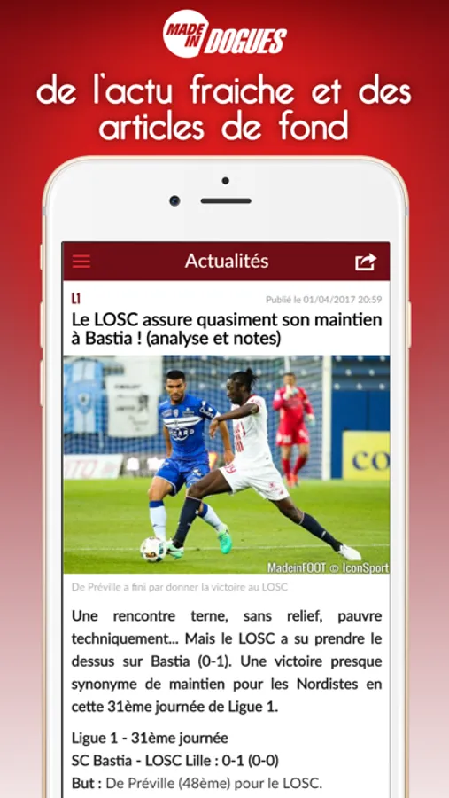 Suivez toute l'info foot du LOSC gratuitement sur votre mobile, grâce à l'application Foot Lille (Infos, Analyses, Interviews, Mercato, Résumés de matchs).