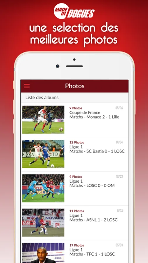 Où que vous soyez, restez connecté 24h/24 à l'actualité et aux résultats de votre équipe préférée : le LOSC.