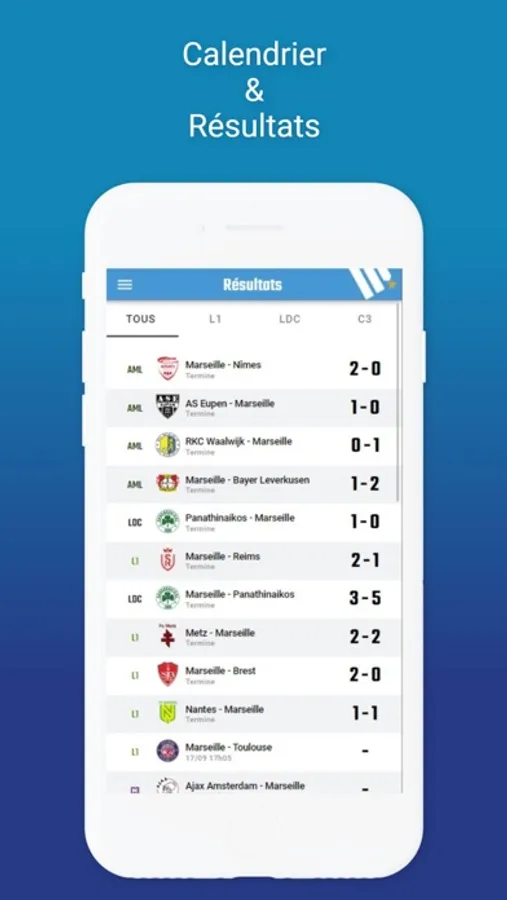 Où que vous soyez, restez connecté 24h/24 à l'actualité et aux résultats de votre équipe préférée : L' OM.