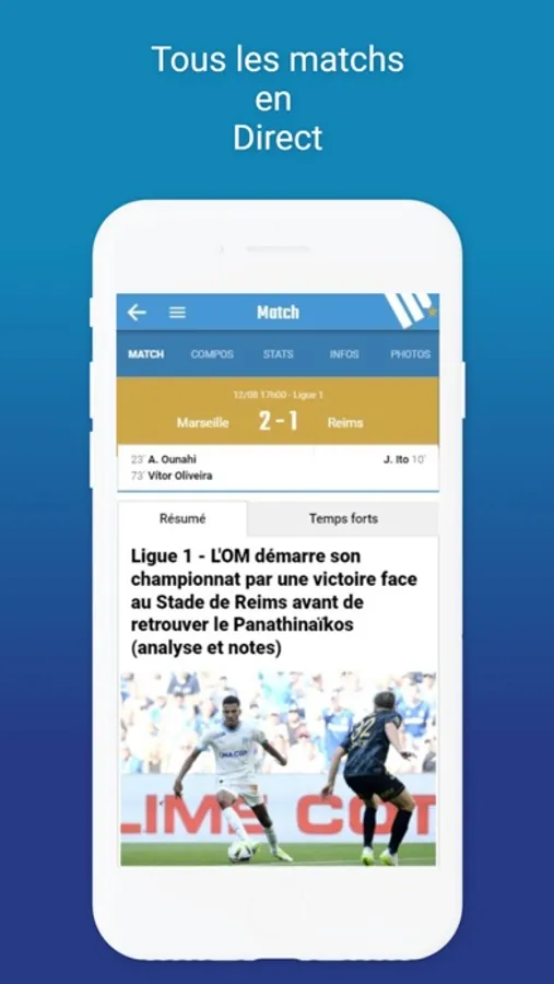 Obtenez tous les résultats de l'OM en direct live (Compos, Actions, Statistiques, Photos).