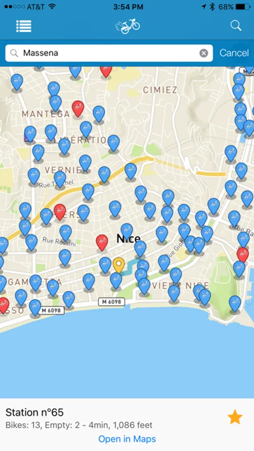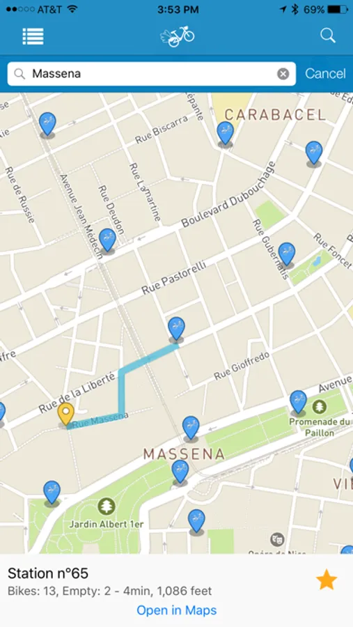 - Display the map of stations in Nice to rent a bike or drop off a bike