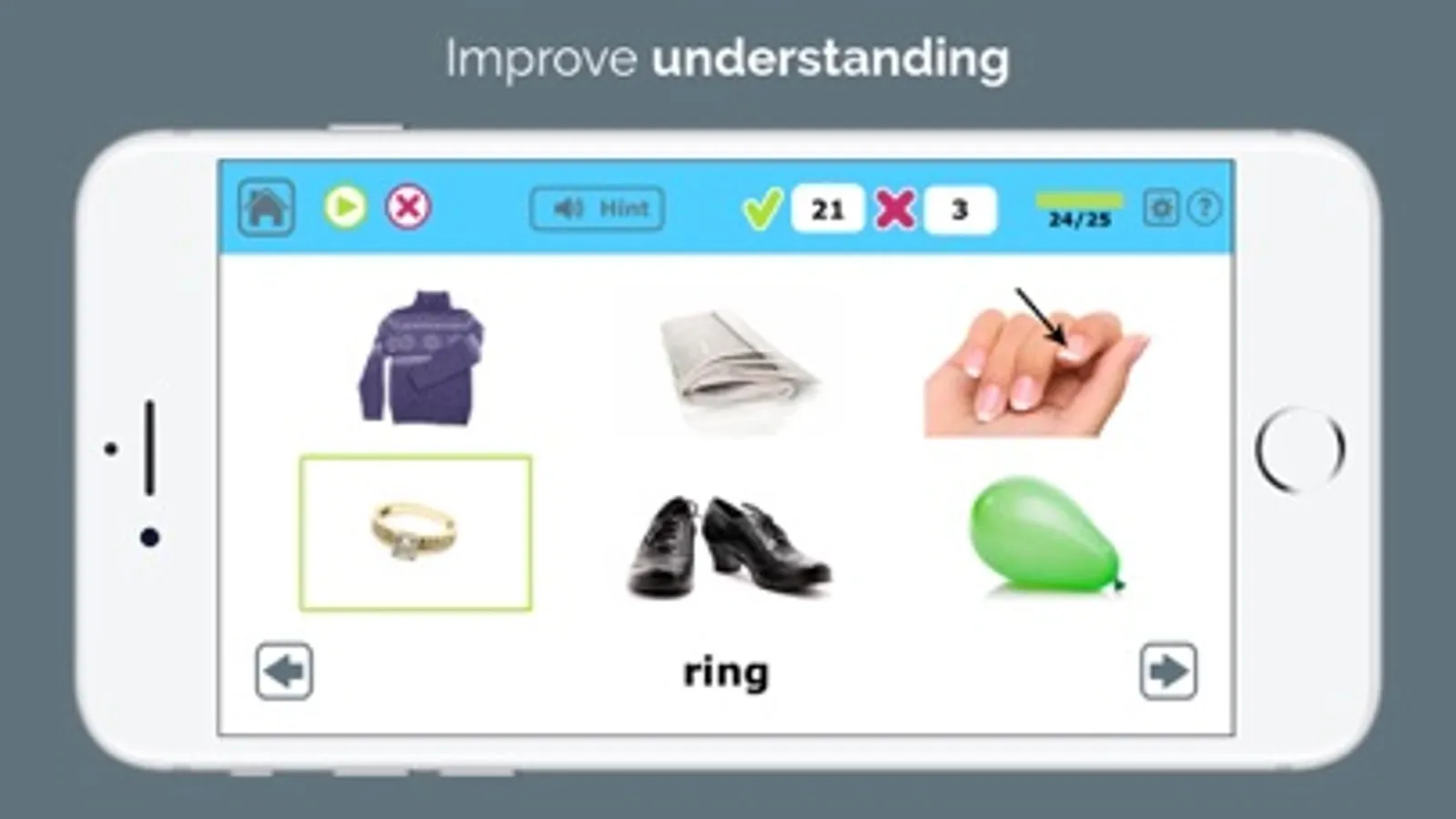 Build listening and reading comprehension skills for nouns, verbs, and adjectives. Take the first step in your aphasia recovery with an app that automatically adjusts difficulty based on performance.