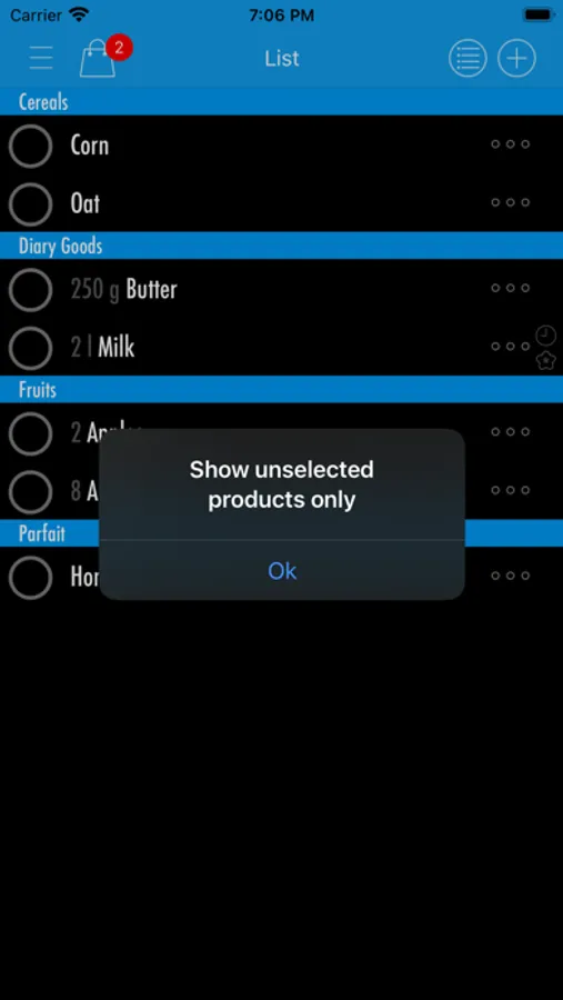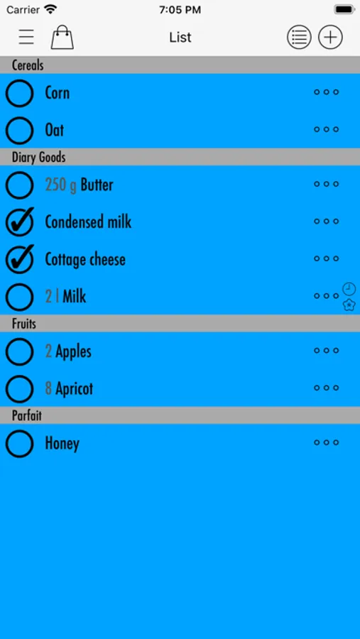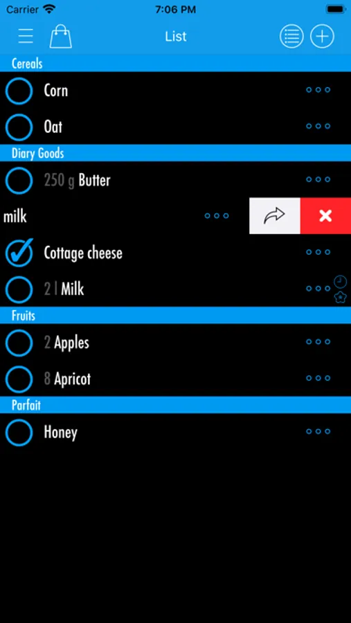 • Unlimited number of shopping lists (switch list by tapping its name in header)