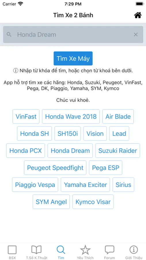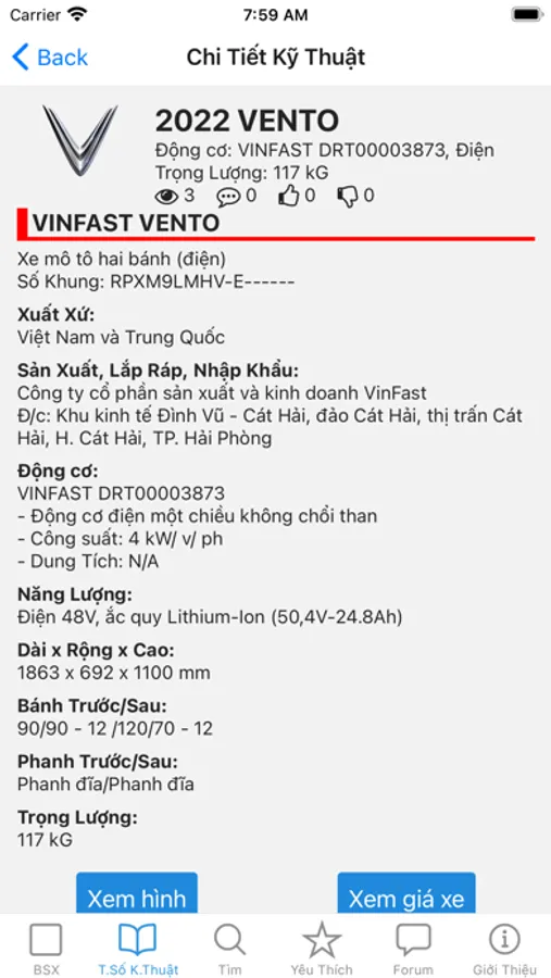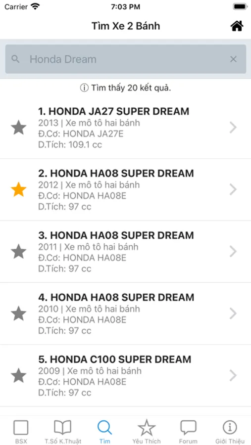 - Tính năng mới phiên bản 4.x: hỗ trợ tra cứu thông số kỹ thuật cho xe máy các hãng thông dụng ở Việt Nam như năm sản xuất, xuất xứ, cty lắp ráp/sản xuất, loại nhiên liệu, động cơ xe, v/v.