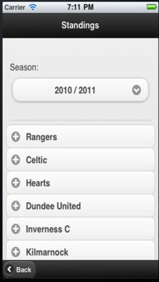 Watford, Aberdeen, St Johnstone, Motherwell, Inverness C, Rangers,Hearts, Dundee United,Kilmarnock,Hibernian, Celtic, Dunfermline, St Mirren, Hamilton, Falkirk, and Gretna