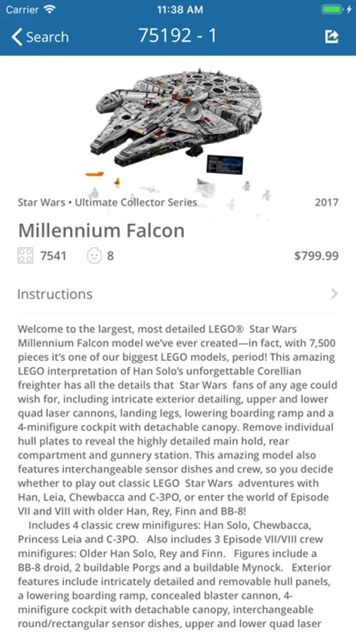 ○ user can add to want list and change number of owned, edit set notes visit on Brickset site and share Brickset url on Facebook and Twitter
