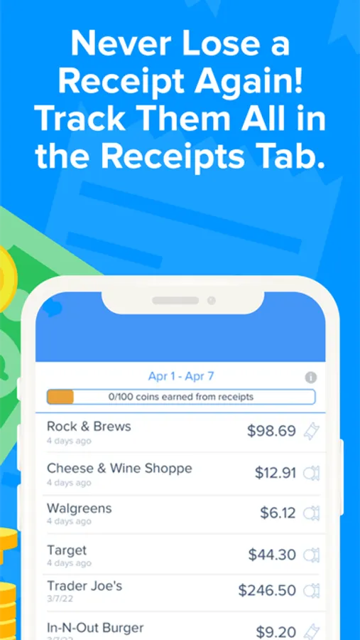 Using the Receipt Hog app earns you real money. Accumulate rewards and coins, then redeem coins for cash with PayPal, Visa, or Amazon.