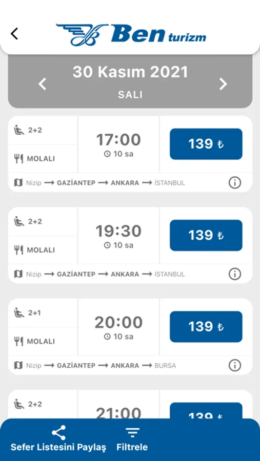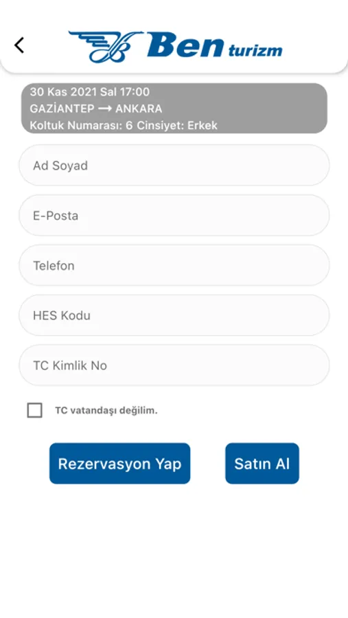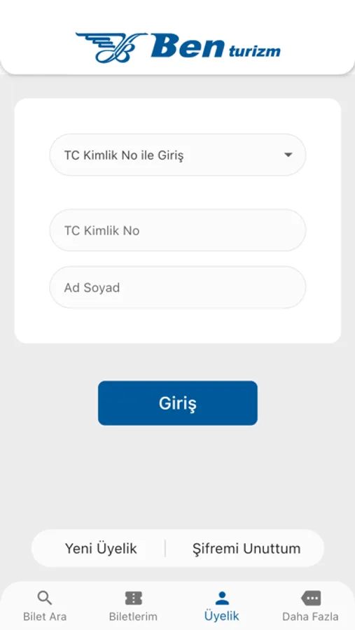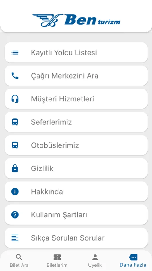 Ben Turizm'in şehirlerarası ulaşım biletlerinin satılmasını sağlayan bir iPhone uygulamasıdır.