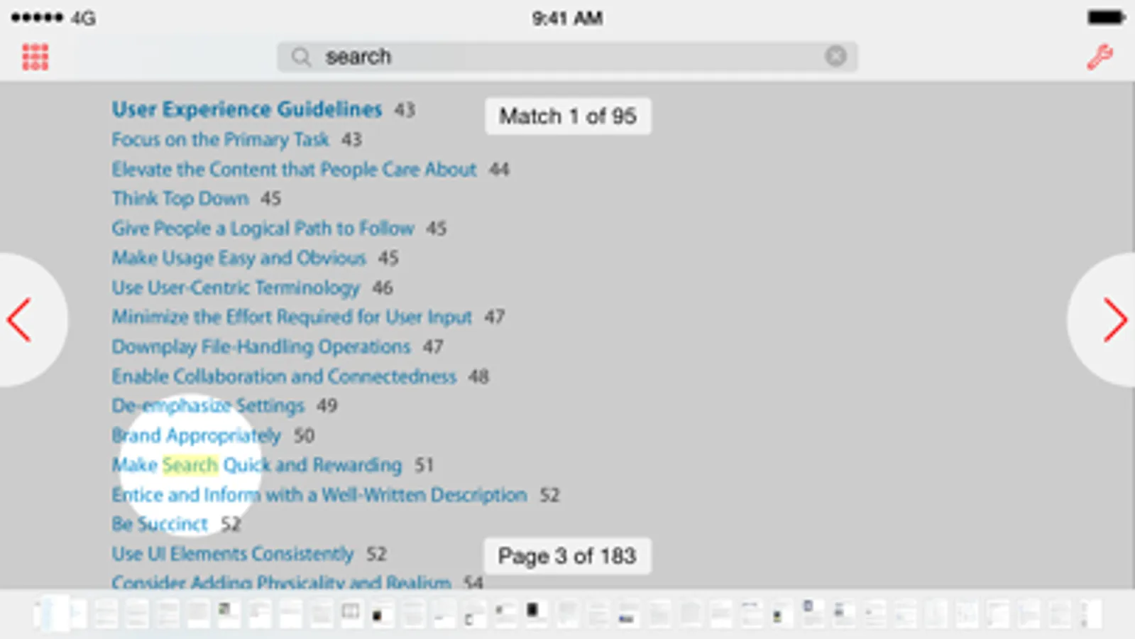 It’s also a great PDF viewer with a very natural style of navigation. It snaps to page boundaries, yet it’s easy to flick past them. Zooming is straightforward by pinching, or you can double-tap a region of text to zoom to fit. You can easily jump to any part of the document using the scrub bar. And everything is lightning-fast, even on large documents.