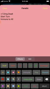 • Custom effects keyboard helps you add effects to any target with just a few taps.