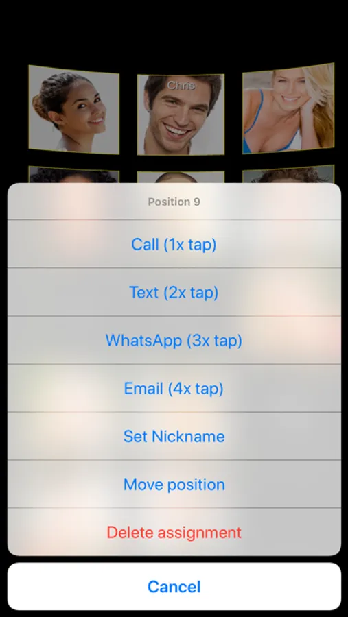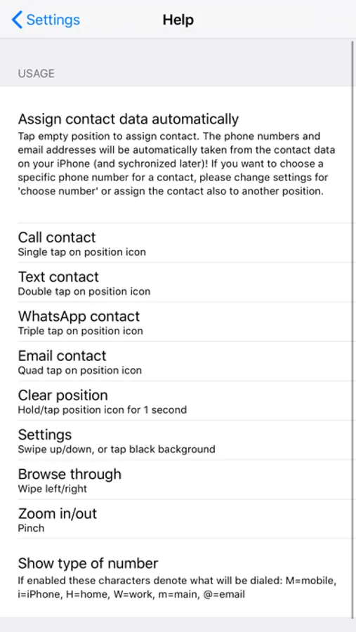 **IMPORTANT**: Due to this feature, Quick Fav Dial needs access to your contacts! If you don't grant access on the first startup, the app will not work properly and permanently forget all assignments after restart (you can resolve this issue in the Privacy settings of your iPhone later)!