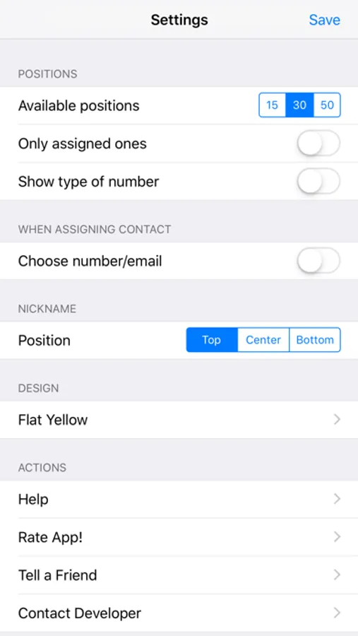 This app reuses the contacts already stored on your iPhone, so that you do not have to enter phone numbers or email addresses again! Just assign a contact to a position and everything works automatically like a charm! If you change your contacts later, the app will automatically use the new data!