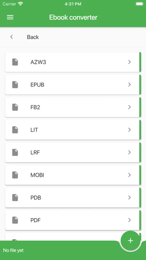 Ebooks converter: AZW, AZW3, DJVU, DOCX, ePub, FB2, HTML, HTMLZ, LIT, LRF, MOBI, OEB, PDB, PDF, PML, PRC, RB, RTF, SNB, TCR, TXT, TXTZ