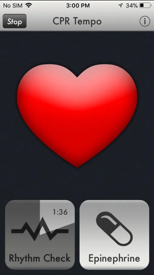 CPR Tempo provides audio and visual cues to aid the timing of chest compressions during cardiopulmonary resuscitation (CPR). Timers are also provided for rhythm checks after defibrillator shocking and for epinephrine administration.