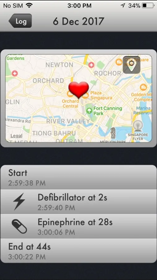 - Log of each resuscitation event detailing each action taken and location of event (location services required)