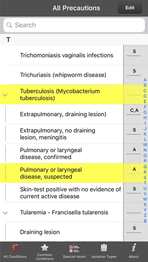 -Hundreds of infection control precautions organized by both micro-organism and disease