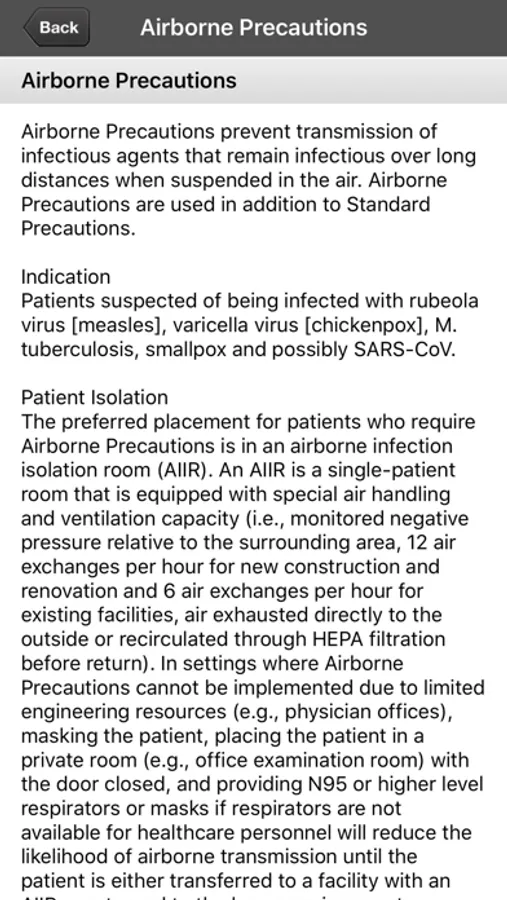 The application incorporates guidelines from the 2007 “Guideline for Isolation Precautions: preventing transmission of infectious agents in healthcare settings”. This material was used with permission from the Healthcare Infection Control Practices Advisory Committee of the Centers for Disease Control (CDC). Additional information was obtained from American Academy of Pediatrics Red Book 2009. Information on cystic fibrosis was obtained from the 2003 Cystic Fibrosis Foundation Guideline, “Infection Control Recommendations for patients with cystic fibrosis: microbiology, important pathogens, and infection control practices to prevent patient to patient transmission”.