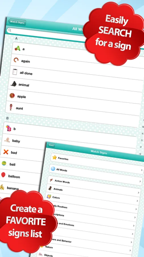 "The layout of your app is amazing to say the least and my one year old who already knows some signs was so into the babies signing instead of the adult that we see in most videos and other apps." ~Victoria