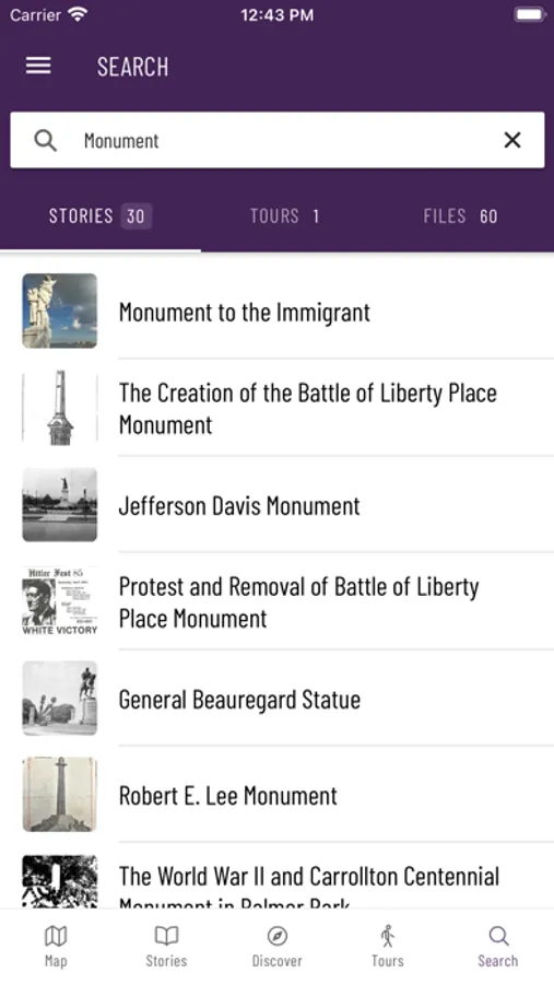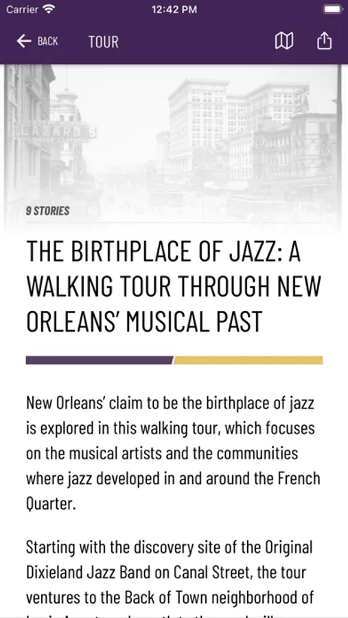 Find interesting people, places, and events in New Orleans' history. Take tours that interpret New Orleans' rich social and cultural history. Each point on the interactive GPS-enabled map is an interpretive story that includes historical information about the site along with historic images from various regional archives and historical publications. Many sites also include short documentary videos or audio clips based on expert research or oral history interviews.