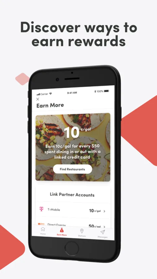 Dine: Earn 10¢/gal for every $50 you spend dining with a linked Mastercard, Visa, or American Express at more than 10,000 participating restaurants nationwide.