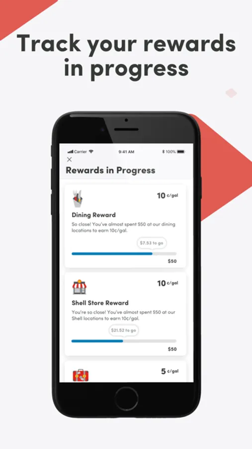 At Shell: With Gold Status, you’ll save at least 5¢/gal on every fill-up at participating Shell stations. Also, you can earn rewards at select Shell stations when you purchase snacks, beverages, car washes and more.