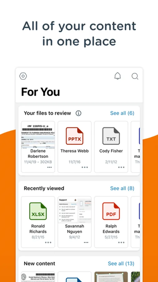 Use Content as your single access point to search across the places your content is stored, regardless of whether the content is downloaded to your device or not. Once you’ve hit search, add filters to find exactly what you’re looking for.