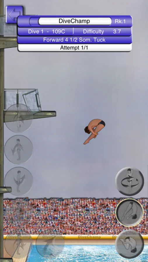The game features realistic 2D graphics captured from experienced national divers, ultra-smooth animation and responsive controls for optimal gameplay following closely the beautiful (and dangerous) sport of diving!