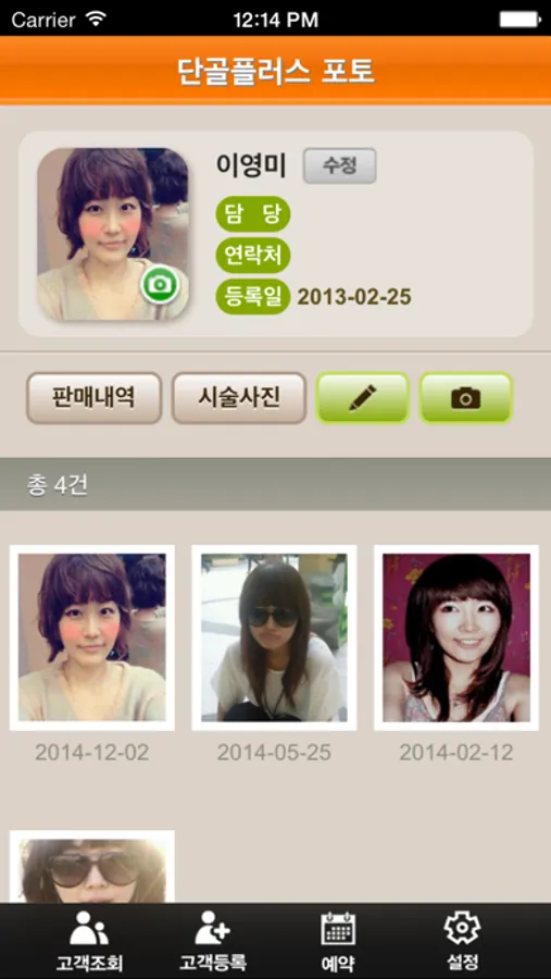 고객의 과거시술사진을 한눈에 파악할 수 있고