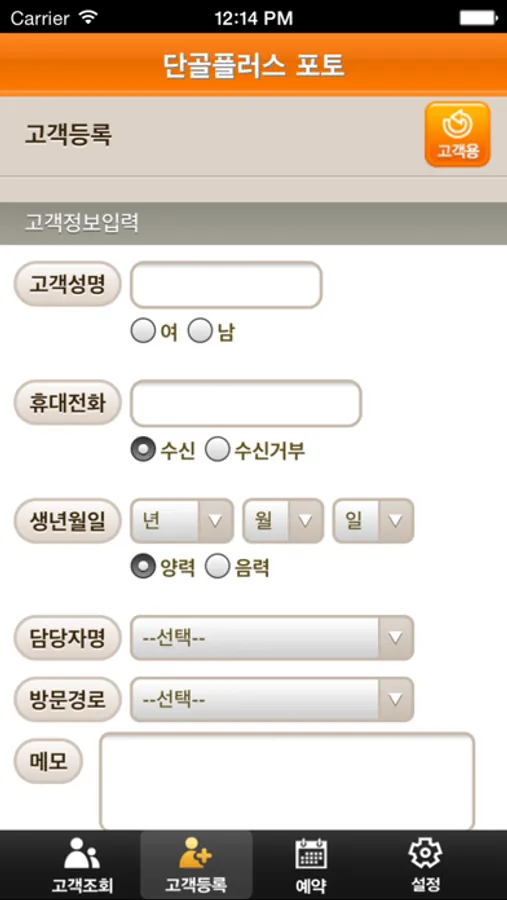 단골플러스 포토는 간단한 고객정보를 입력하고