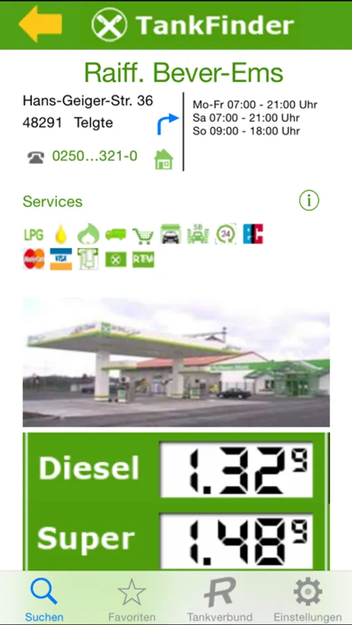 Sobald eine Tankstelle ausgewählt wurde, erhalten Sie weitere Detailinformationen: