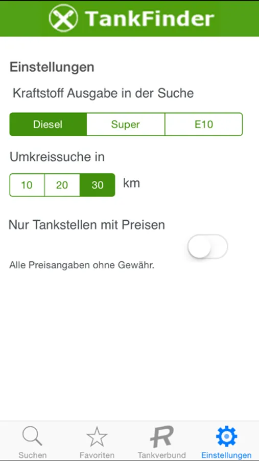 Für die Nutzung der App ist eine Internetverbindung notwendig, damit aktuelle Stationsinformationen und Preise abgerufen werden können.