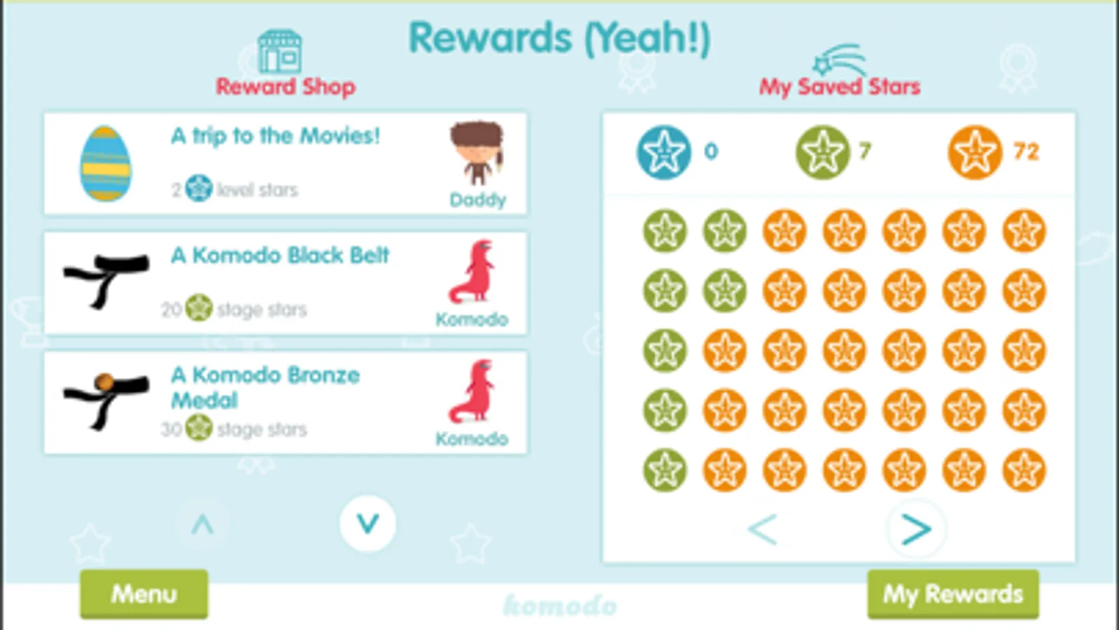 •Komodo reports back on your child's progress as often as you'd like, and allows you to set real-life rewards to motivate them along the way
