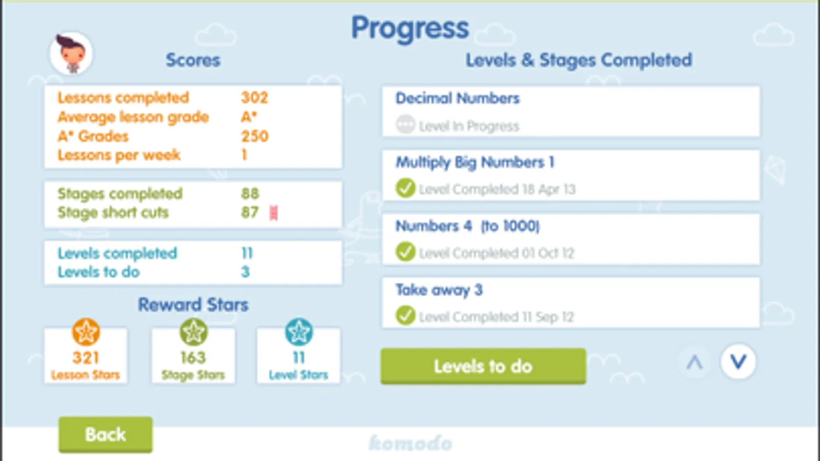 •Komodo's adaptive system allows kids to skip to an appropriate level once they have mastered a topic, so even the most able should find it constantly rewarding and challenging.