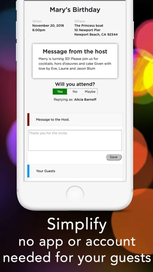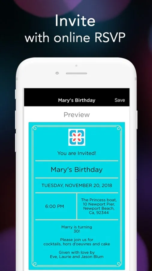 Easily manage the invitations and RSVP directly from the App without having to use an external service. All the invitations can be sent to your guests emails from Pro Party Planner and the RSVPs will be updated in real time. We also make it easy for the guests as they do not need to create an account or download an App in order to RSVP. We also have a Zero Spam and data sharing policy so their privacy is protected.