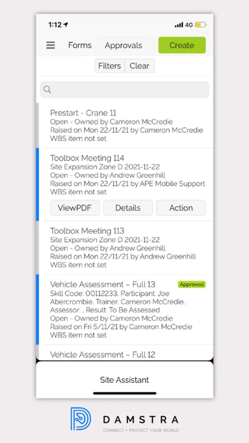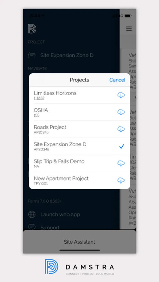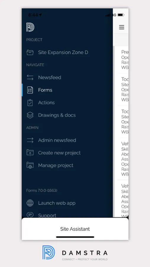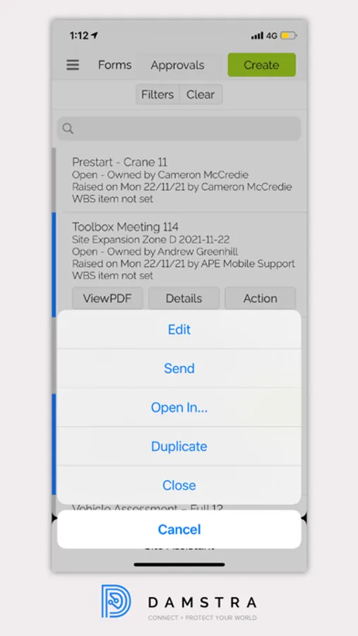 Damstra Forms saves everything into projects, organising forms and documents with sequence numbers and metadata so you can easily find them later.