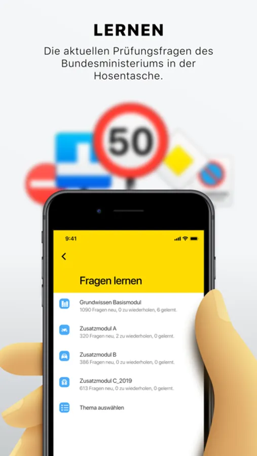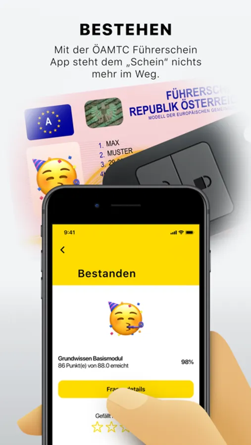 Mit der ÖAMTC Führerschein App kann die Führerscheinprüfung für die Module Grundwissen, A oder B kostenlos simuliert oder ein Training absolviert werden.