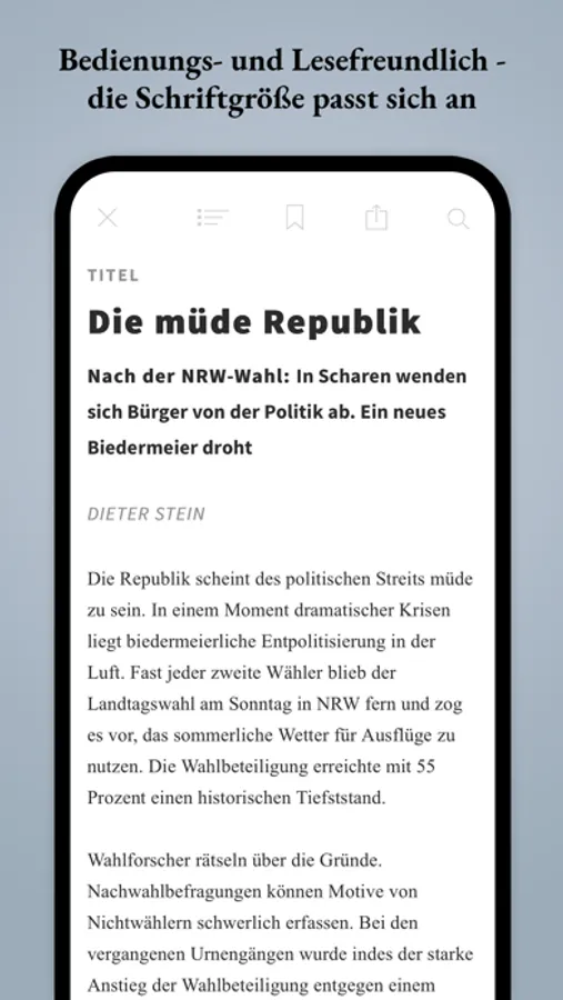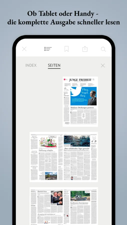 Mit der JF-App erhalten Sie Zugriff auf die elektronische Fassung der JF-Printausgabe. Alle Ausgaben können in der App per Einzelkauf oder bereits bestehende Abonnenten können Ihr Abo zur App-Nutzung aktivieren.