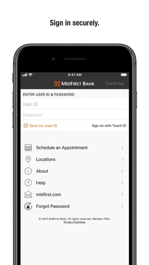 Start banking wherever you are with MidFirst Bank Mobile Banking for iPhone®. Available to all online banking customers of MidFirst Bank, MidFirst Bank Mobile Banking allows you to check balances and recent transactions, lock your debit and credit cards, transfer funds, pay bills, deposit checks, find locations and send money through Zelle® , all from your smartphone. Member FDIC