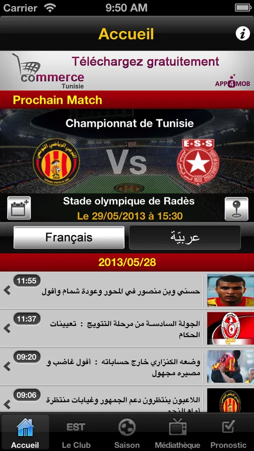 FANS EST est l'application incontournable pour les fans de l'Espérance Sportive de Tunis, le club le plus prestigieux de la Tunisie.
