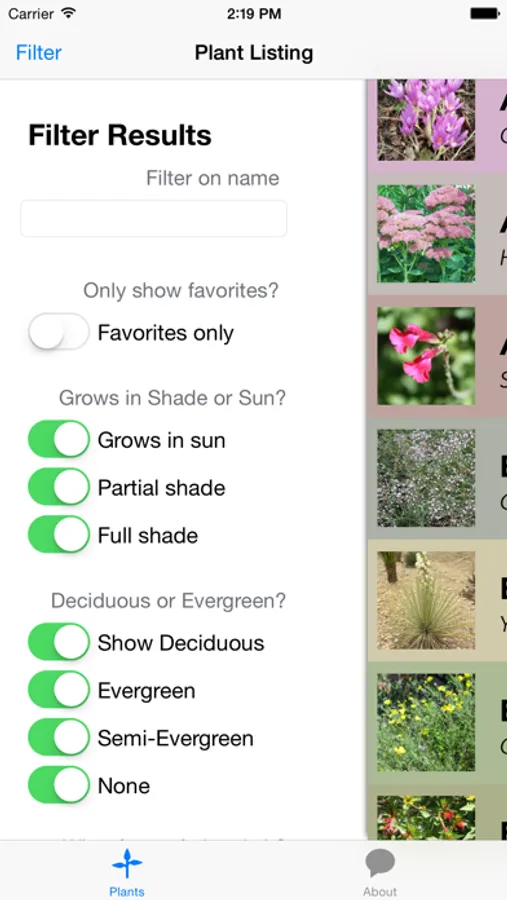Browse through a database of hundreds of 700+ plants or search based on specific criteria. Each plant includes photo(s) and relevant information on use and care. Mark your “favorites” for quick access at the nursery or in your yard.