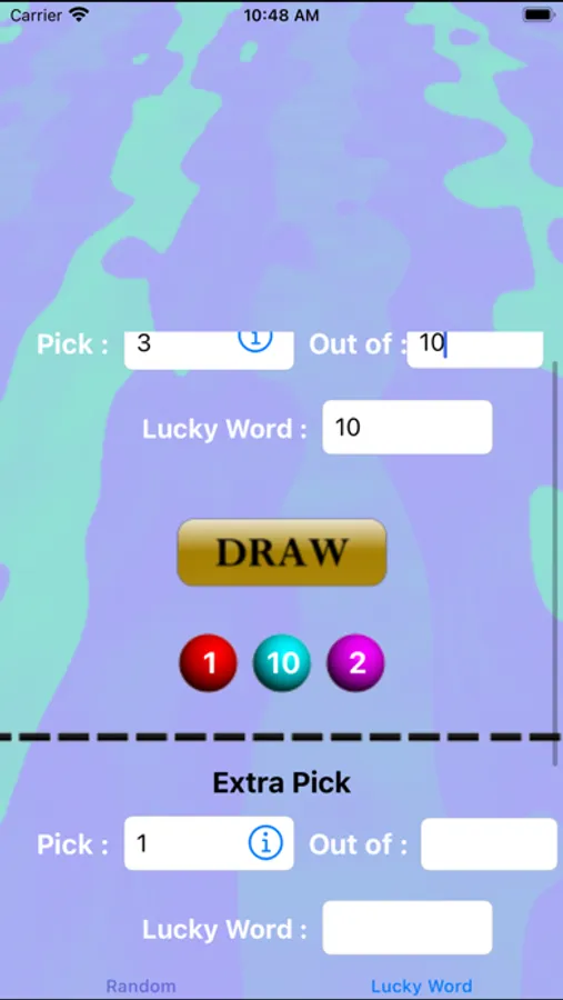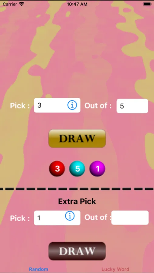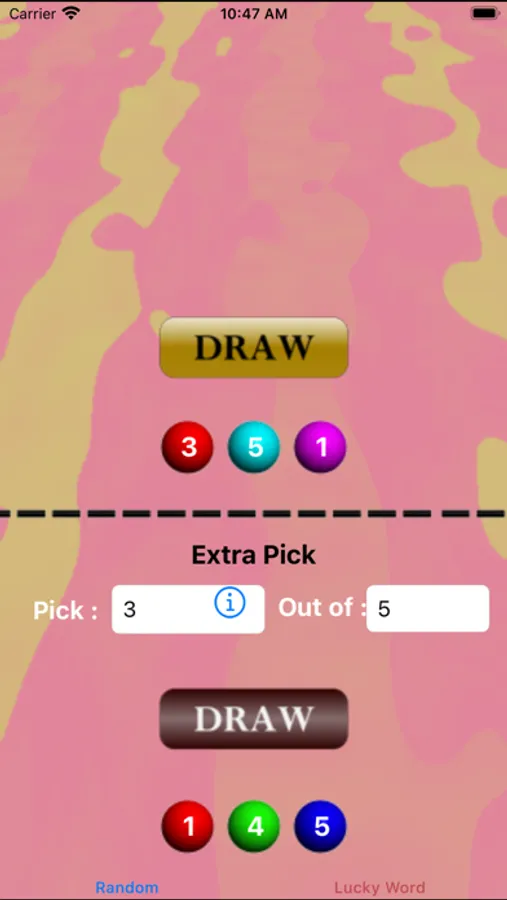 Use this app to draw your lucky numbers for your lottery pick. You can have random picks as well as lucky word pick. Using lucky word pick you can enter your lucky word, phrase, name etc. to generate your lucky numbers according to that word. Try this app while playing powerball, Megamillions, Lotto, Lucky 3, Lucky 7 etc.. lottery play. And good luck for your next win.
