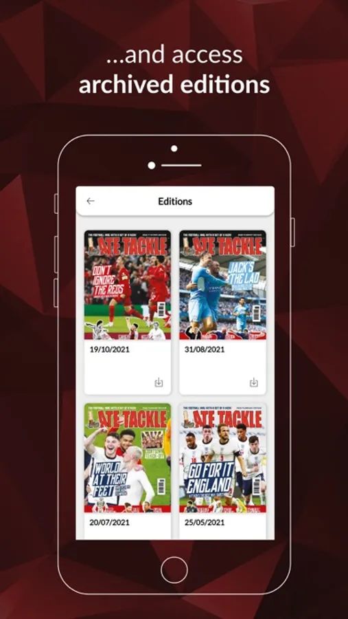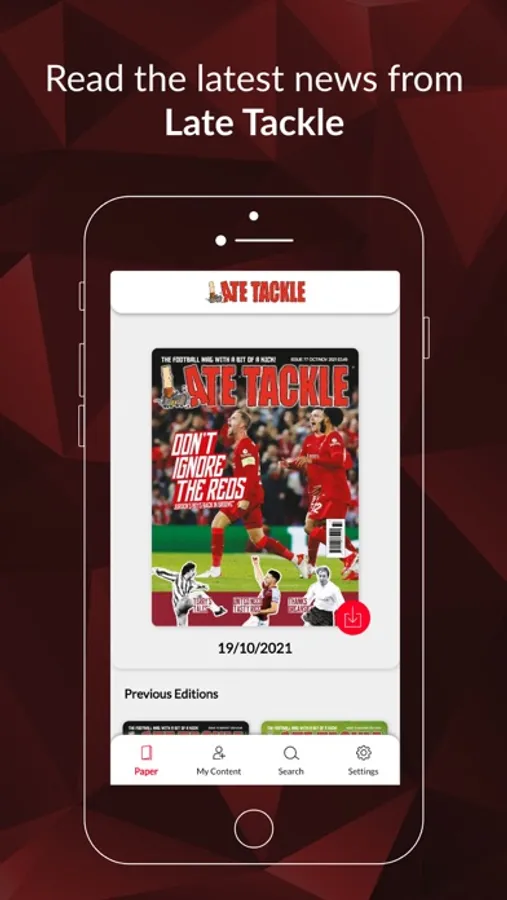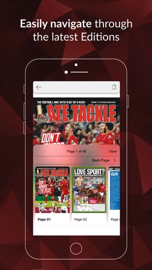 * Late Tackle Magazine editions – Read your automatically updated magazine by scrolling and swiping through individual or double page spreads.