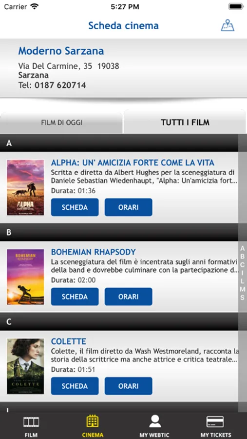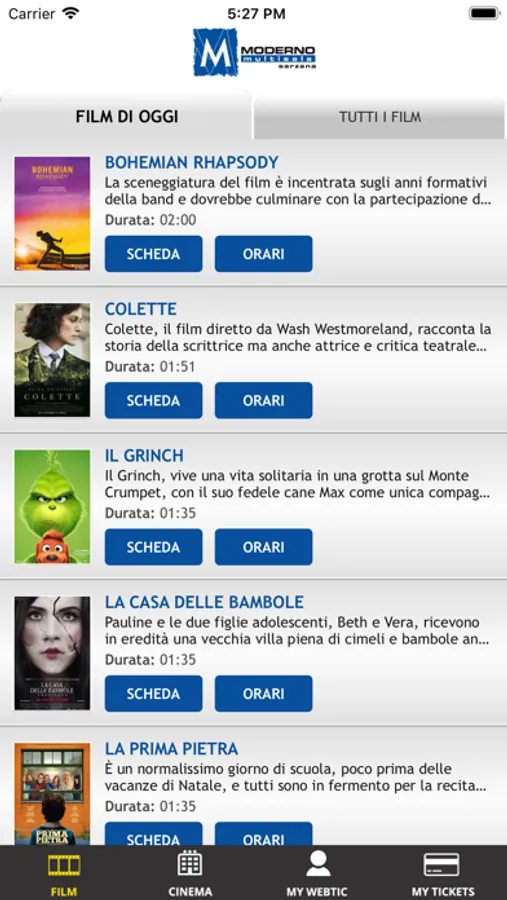 Applicazione di Crea Informatica, per l'acquisto e la prenotazione dei posti Nella Multisala Moderno di Sarzana gestita dal grande e unico Mimo.