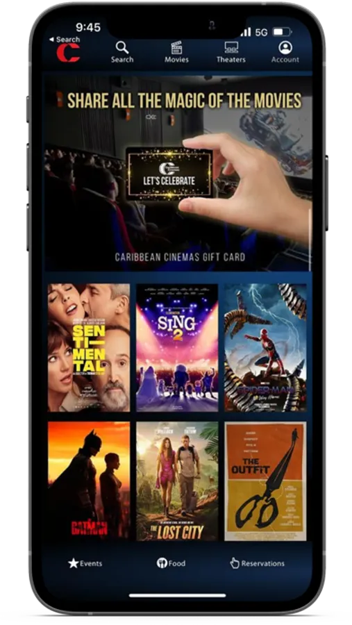 Caribbean Cinemas mobile app is destined to be your ‘one stop shop’ for all things CC. Find out what movies and events are available near you, and what’s coming next! Watch trailers, buy tickets, include concessions in advance, register for CinemasClub, and track your rewards.