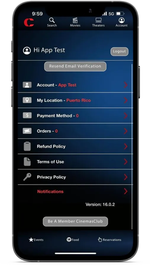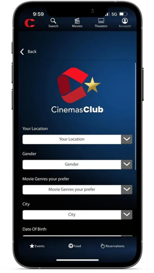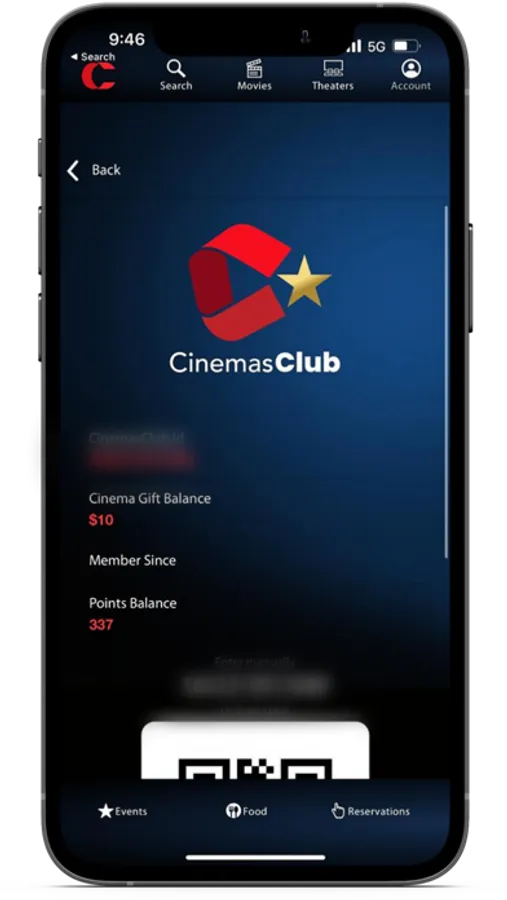 Account: Keep track of CinemasClub points, past orders, CinemaGift balance and more!