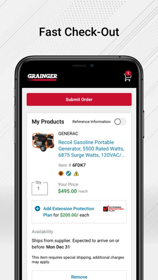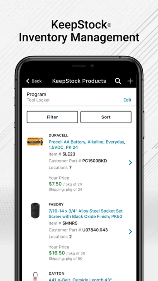 The Grainger app for iPhone is designed to deliver all that Grainger.com® has to offer no matter where the job takes you. Use the app to quickly narrow down your search, check account pricing, check item availability at a nearby branch, or manage costs with the Grainger KeepStock® inventory management solution.