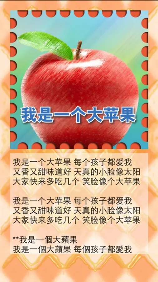 -歌詞顯示,讓小朋友一邊聽歌,一邊學習.