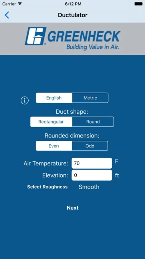 Greenheck’s Toolbox includes a Fan Law Calculator and a Ductulator App. To use the Fan Law Calculator, input existing rpm, cfm, static pressure, and horse power. Modify any one measurement and the remaining three calculate. Greenheck’s Ductulator app allows you to quickly and easily size HVAC duct. Input your duct shape, rounded dimension, air temperature, elevation and select roughness. Next determine sizing by airflow or dimensions, select velocity or friction factor, input your volume, velocity, aspect ratio and calculate. Your results will be displayed.