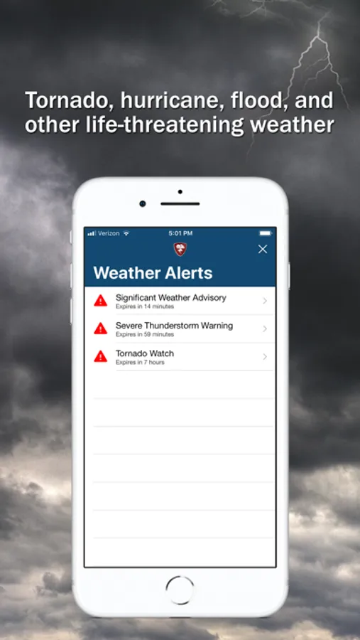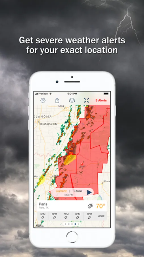 Severe weather alerts for your exact location. Storm Shield gives you storm-based alerts for tornado, hurricane, flood, thunderstorm, winter storms and other life-threatening weather events via voice and push notification.