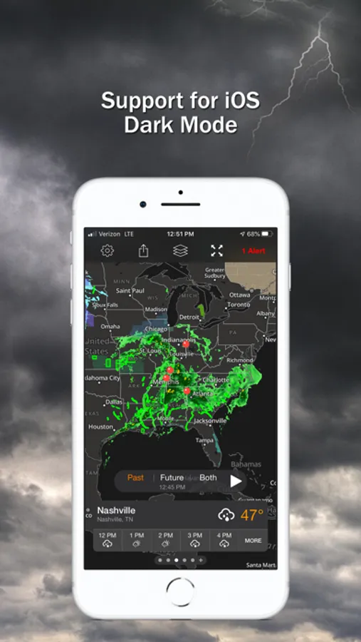 1) Lightning strike push notifications up to 10 miles away.